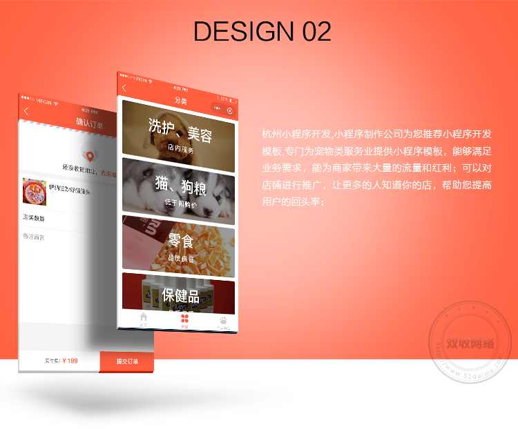 杭州小程序開(kāi)發(fā),小程序制作公司雙收網(wǎng)絡(luò)為您推薦小程序開(kāi)發(fā)模板,專(zhuān)門(mén)為寵物類(lèi)服務(wù)業(yè)提供小程序模板,能夠滿(mǎn)足業(yè)務(wù)需求,能為商家?guī)?lái)大量的流量和紅利;可以對(duì)店鋪進(jìn)行推廣,讓更多的人知道你的店,幫助您提高用戶(hù)的回頭率;