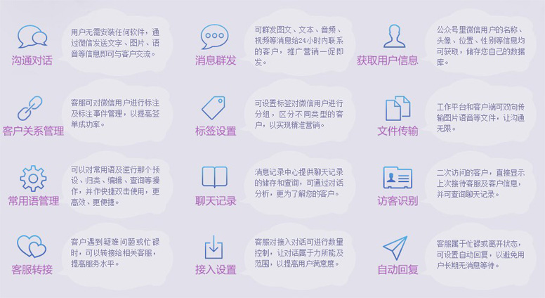 隨著互聯(lián)網(wǎng)的發(fā)展及網(wǎng)絡(luò)營(yíng)銷模式重要性的凸顯,在線客服系統(tǒng) 會(huì)成為網(wǎng)絡(luò)營(yíng)銷的重要工具,也是提示企業(yè)形象、加強(qiáng)企業(yè)與訪 客互動(dòng)的必備工具;如今,微信迅速崛起,商家都把店鋪搬進(jìn)了 公眾賬號(hào),而微盟微客服系統(tǒng),就是一款為微信商家打造的實(shí)時(shí) 溝通軟件,讓商家可以分享微信6億用戶,創(chuàng)造無(wú)限商機(jī)。