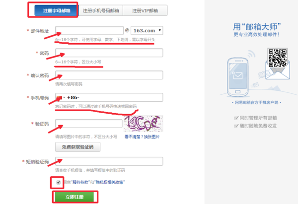 4、在注冊郵箱時(shí)一定要按照上面提示的要求進(jìn)行注冊,全部輸入完畢后點(diǎn)“立即注冊”就創(chuàng)建了自己的郵箱了;