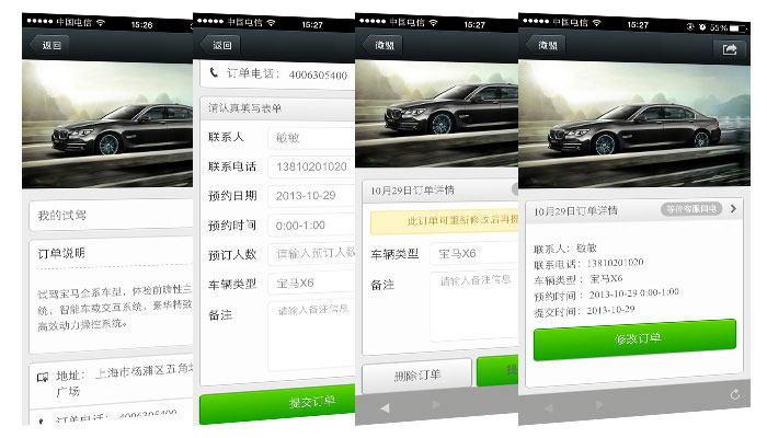 微汽車采用微盟平臺(tái)進(jìn)行汽車的銷售管理、預(yù)約保養(yǎng)、預(yù)約試駕、保險(xiǎn)計(jì)算、車貸計(jì)算、車型比較、違章查詢、360度全景看車、車主關(guān)懷等功能,整個(gè)過程非常便捷,省時(shí)省力省心,并通過與微盟平臺(tái)有交互能力的手機(jī)客戶端,快速便捷的實(shí)現(xiàn)了商家的銷售管理與預(yù)約過程,同時(shí)也實(shí)現(xiàn)了客戶無需進(jìn)入4s店就能進(jìn)行預(yù)約保養(yǎng)和試駕的功能。