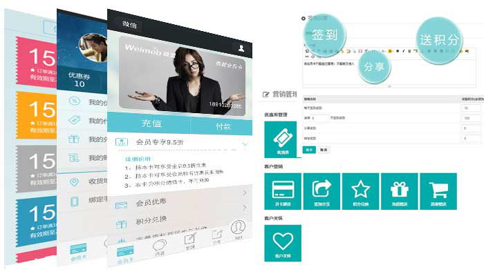 微信會(huì)員卡通過在微信內(nèi)植入會(huì)員卡,基于全國(guó)4億微信用戶,幫助企業(yè)建立集品牌推廣、會(huì)員管理、營(yíng)銷活動(dòng)、統(tǒng)計(jì)報(bào)表于一體的微信會(huì)員管理平臺(tái)。清晰記錄企業(yè)用戶的消費(fèi)行為并進(jìn)行數(shù)據(jù)分析;還可根據(jù)用戶特征進(jìn)行精細(xì)分類,從而實(shí)現(xiàn)各種模式的精準(zhǔn)營(yíng)銷。