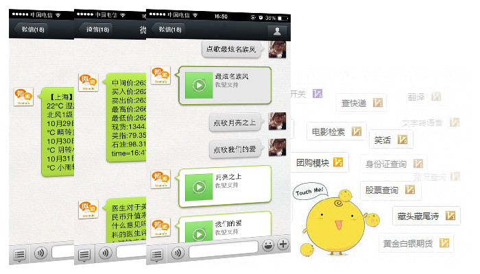 有小黃雞陪聊加強(qiáng)版510萬數(shù)據(jù),過濾了廣告和一些敏感詞匯。 還有天氣查詢 ,手機(jī)查詢,郵編查詢,快遞查詢(支持160家快遞公司),身份證查詢,人品計(jì)算,翻譯,字典,百科(全網(wǎng)數(shù)據(jù)),音樂80.1萬 ,笑話5萬條,小黃雞陪聊510萬條,詩(shī)詞23萬首,詩(shī)句 225萬,成語(yǔ)5萬,謎語(yǔ)5萬,解夢(mèng)3萬,糗事55萬,公交線路4萬,火車線路4500,機(jī)器人學(xué)習(xí)功能等等......