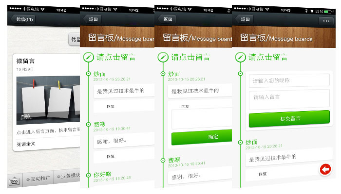 “微留言”是一種能為商家?guī)砭薮蟮纳鐣?huì)化流量的功能,允許留言可以被分享于留言者的朋友圈、騰訊微博和發(fā)送給好友,這意味著留言可以被無數(shù)的粉絲分享,用戶對(duì)商家進(jìn)行實(shí)時(shí)且客觀的評(píng)價(jià),真實(shí)的社交環(huán)境保證了留言的客觀性和有效性?!拔⒘粞浴钡氖褂蒙碳抑恍枳龊卯a(chǎn)品和用戶服務(wù)即可,隨著口碑的傳播,消費(fèi)者將源源不斷。